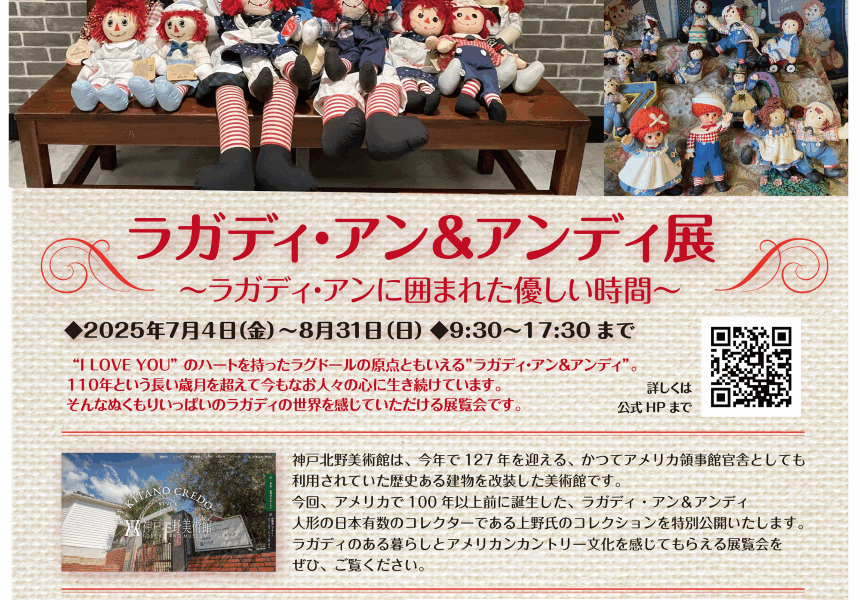 「ラガディ・アン&アンディ展~ラガディ・アンに囲まれた優しい時間~」が神戸北野美術館で開催される。